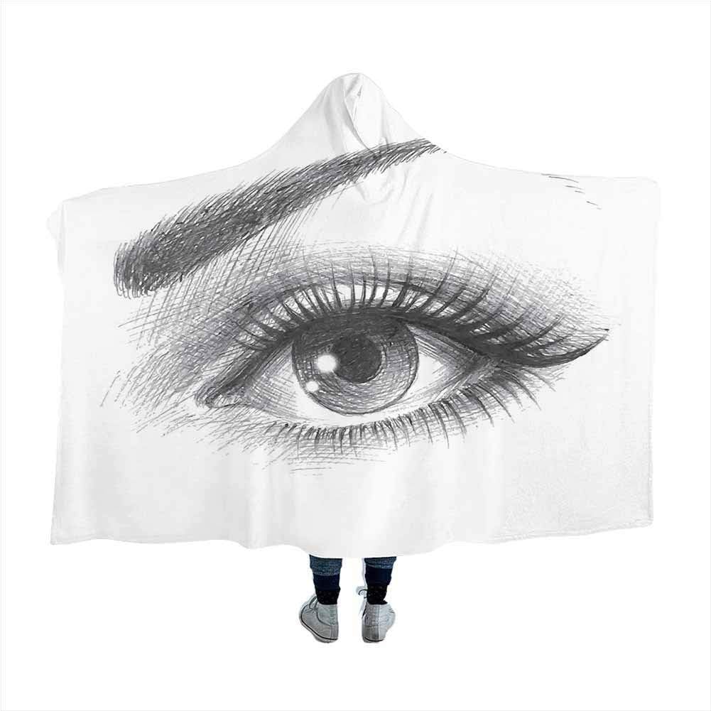 Amazon Com Ggacen Eye Blanket Hoodie Soft Cloak Pencil Drawing Artwork Of A Staring Female Eye With Long Lashes And A Curvy Eyebrow For Adult And Kids Grey White 80x60 Inches Home