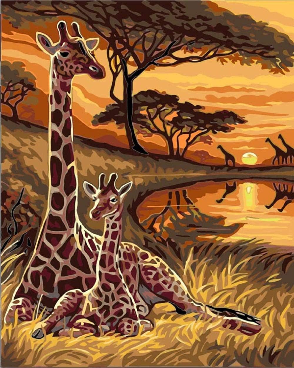 Amazon Com Voocuy Diy Oil Painting Kit For Kids Beginner Hand Painted Landscape Animal Giraffe African Grassland Hand Painting Diy Digital Painting On Canvas By Digital Kit No Frame 40x50 Cm Toys Games
